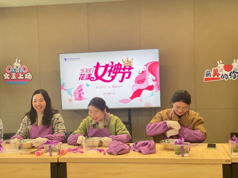 在地產(chǎn)總部,工會組織女職工開展了“永生花、木馬燈手工制作”活動,女職工們繪底板、擺圖案、精心設(shè)計、粘貼、調(diào)整,完成了一件件靚麗的手工作品。工會同時還舉辦了烘焙活動,女職工們分組協(xié)作、齊心協(xié)力,有人負責(zé)打蛋、有人忙著和面、有人執(zhí)掌攪拌器、有人配好蛋糕紙杯,每個人都化身成了甜點大廚,現(xiàn)場氣氛活躍、香味四溢。